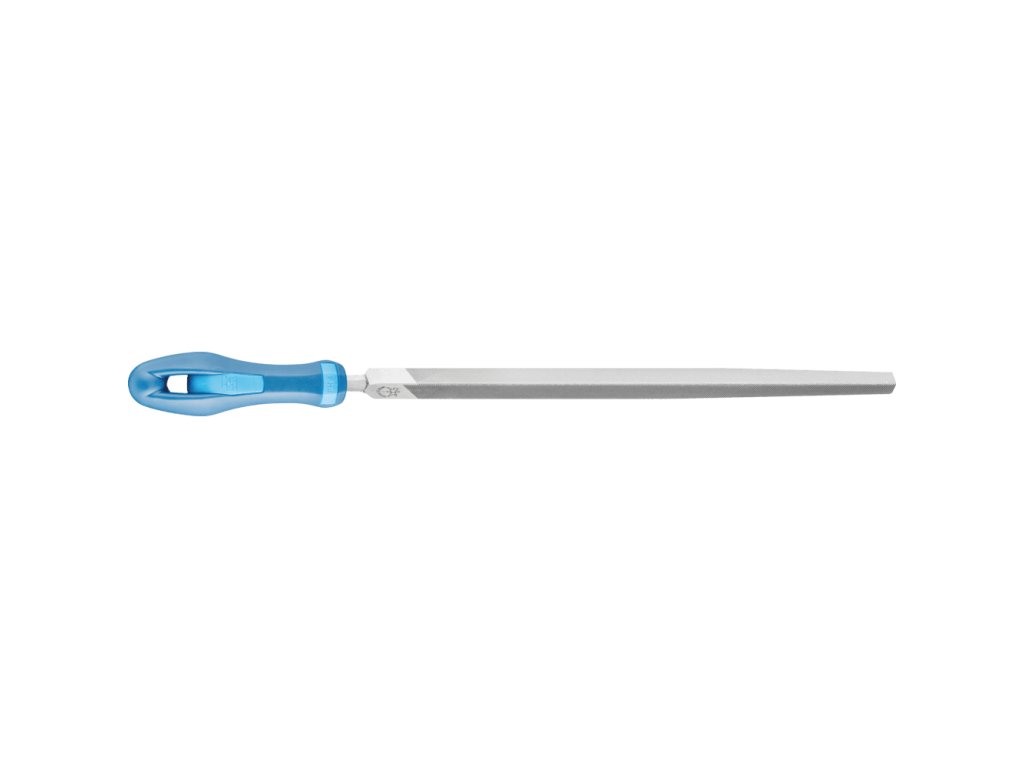 Trojuholníkový, kužeľovitý pilník s rezmi na troch stranách. Vyhotovenie s uhlom. Tvar C podľa DIN 7261. Vhodný na pilovanie uhlových profilov.
