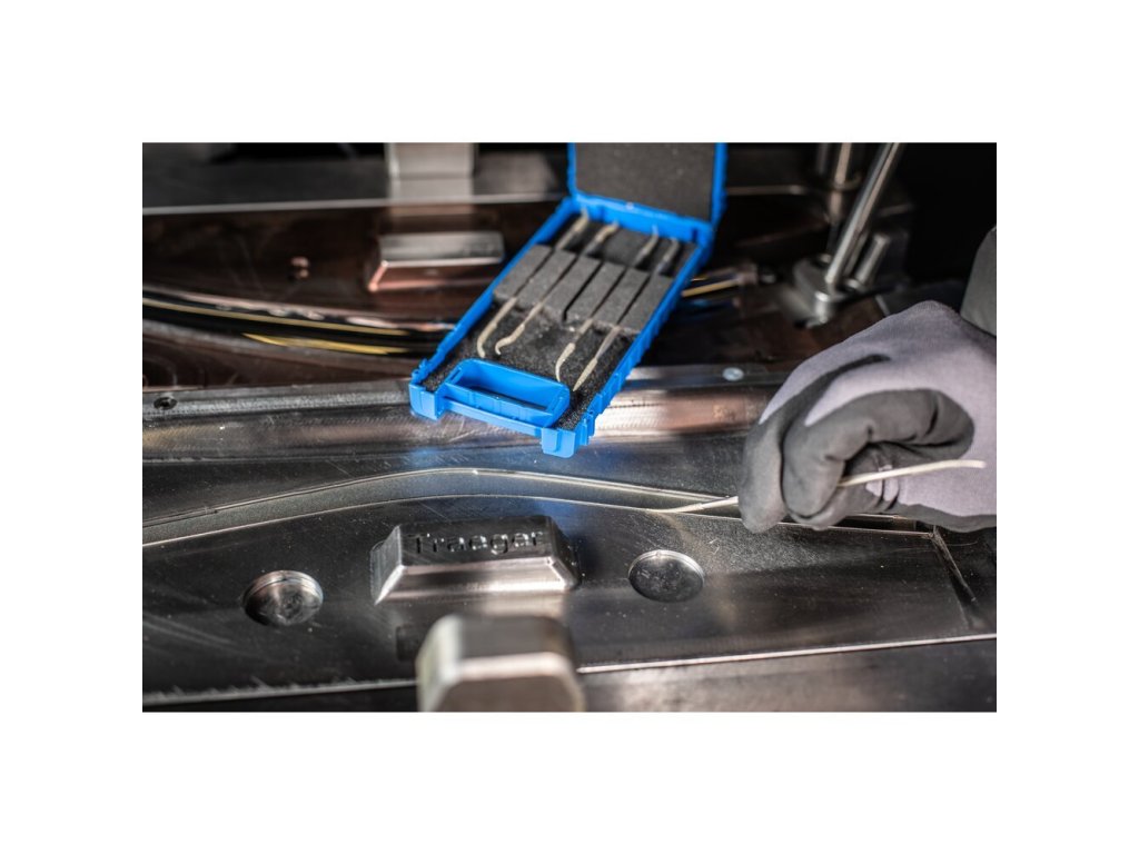 - Zanesené diamantové pilníky je možné vyčistiť kefkou na pilovanie v petrolejovom spreji alebo antistatickom čističi plastov.