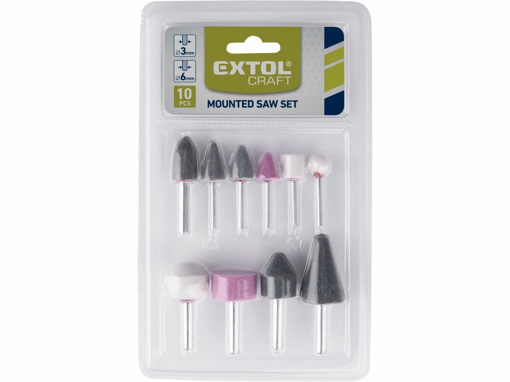 - 10-teiliges Set, Schaft 5x Ø6 mm + 5x Ø3 mm, max. Drehzahl 12500 minˉ¹