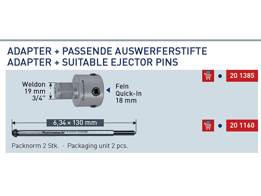 Sie benötigen größere Schnitttiefen wie z.B. 80 oder 110 mm? Arbeiten Sie mit Fein-Adapter + Weldon Kernbohrer.