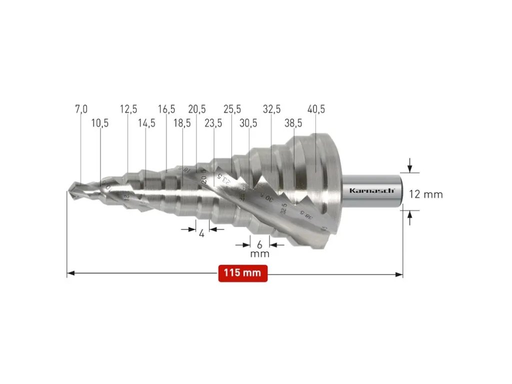 Der Karnasch Professional Stufenbohrer aus HSS-XE Stahl, Spiral genutet mit Kreuzanschliff