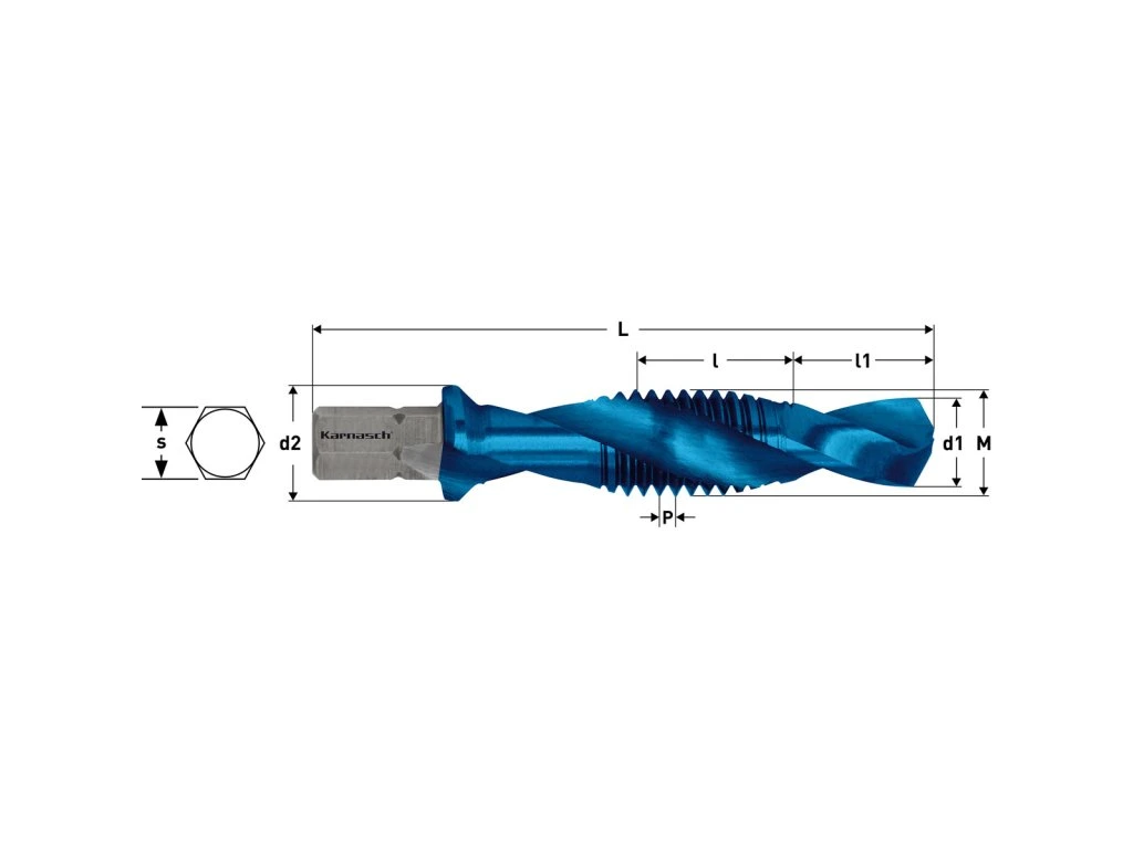 Merkmale: Karnasch Kombi-Gewindebohrer für schnelles Gewindeschneiden mit Akku-, Elektro- und stationären Bohrmaschinen mit umschaltbarer Rechts-/Linkslaufrichtung. Besonders geeignet für Baugruppen und Kleinserien. Achten Sie beim Arbeiten auf die korrekte Ausrichtung der Achse zwischen Bohrer und Bohrung. Verwenden Sie ein geeignetes Schneidöl (siehe Schneid- und Schmiermittel, z. B. Hochleistungs-Schneidspray MECUTSPRAY 500 ml, Bestellnr. 601150). Gewinde können bis zu einer maximalen Tiefe von 1xD geschnitten werden. Beim Bohren mit Akku- und Elektrobohrmaschinen wird für die Größe M3x0,5 eine maximale Drehzahl von 1600 U/min empfohlen. BLUE-TEC-Beschichtung – längere Lebensdauer und verbesserte Qualität. Geeignet für: Stahl, Aluminium, Kupfer, Messing, Zink, Kunststoffe GFK/CFKZusätzliche Parameter