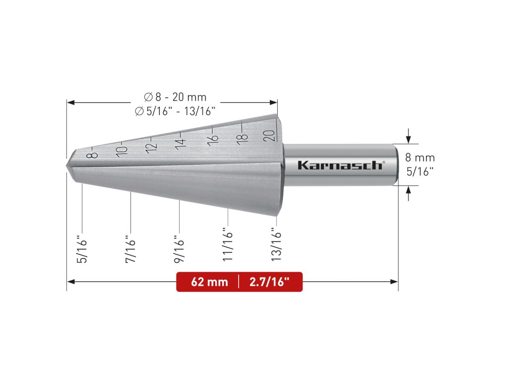 Die Karnasch Blechschälbohrer zum Bohren dünner Bleche bis zu 4 mm. Hervorragend geeignet zum: Vergrößern bestehender Bohrungen / Bohren schräger Löcher / Erzeugen ineinandergehender Bohrungen. Durch den schälenden Schnitt entstehen beidseitig nahezu gratfreie Bohrungen.
