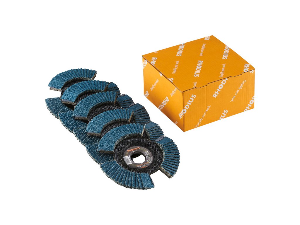Die Fächerschleifscheibe ist in den Durchmessern 115 mm und 125 mm erhältlich sowie je nach Ausführung mit den FEPA-Körnungen 40, 60 und 80.