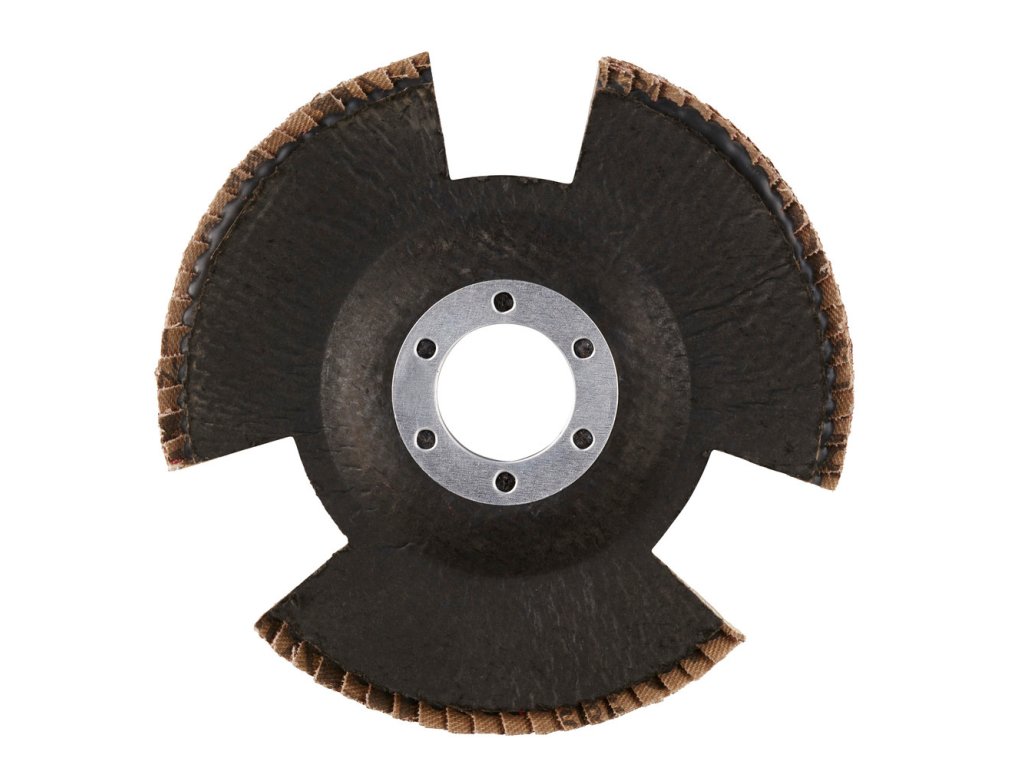 Diese Fächerschleifscheibe (Lamellenscheibe) mit Aussparungen eignet sich für Winkelschleifer aller Leistungsklassen.