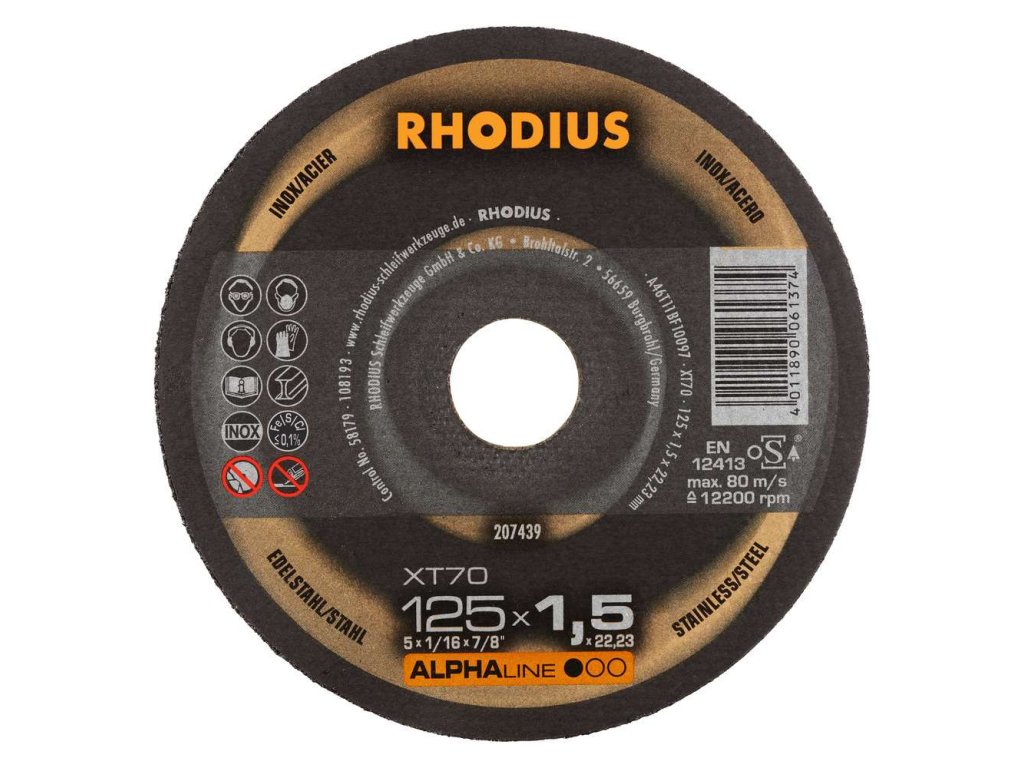 In der Anwendung überzeugt die XT70 mit einem besonders leichten und schnellen Schnitt. Die Scheibe zeichnet sich hier durch geringen Funkenflug, stabilen Einsatz und eine hervorragende Laufruhe aus. Sie macht die Arbeit leichter und ist besonders wirtschaftlich. Präzises und schnelles Arbeiten in dünnwandigem Material ist kein Problem. Dieses RHODIUS Qualitätswerkzeug eignet sich besonders für das Trennen von Baustahl, dünnwandigen Blechen, rostbeständigem und säurebeständigem Stahl, Kabelschächten, Trägern und Profilen.