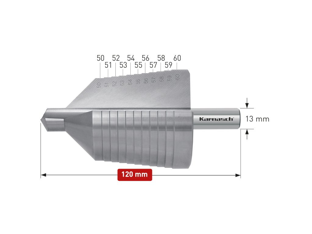 Der Karnasch Professional Stufenbohrer aus HSS-XE Stahl, Gerade genutet mit Kreuzanschliff