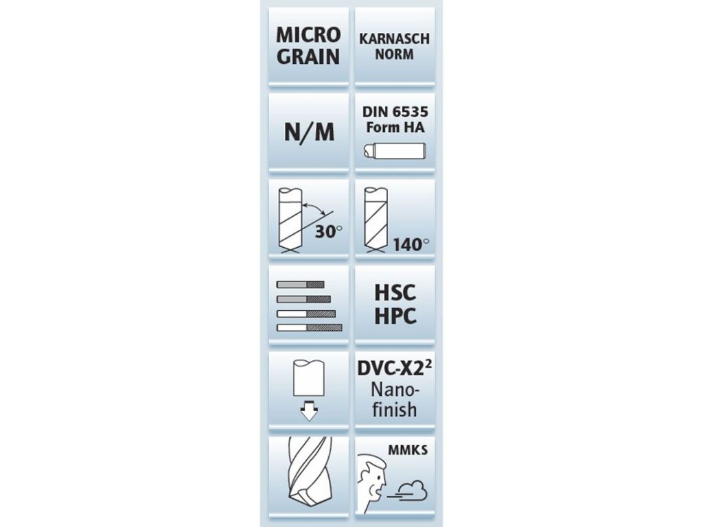 | Kategorie: | Špirálové vrtáky s valcovou stopkou tvrdokovové |