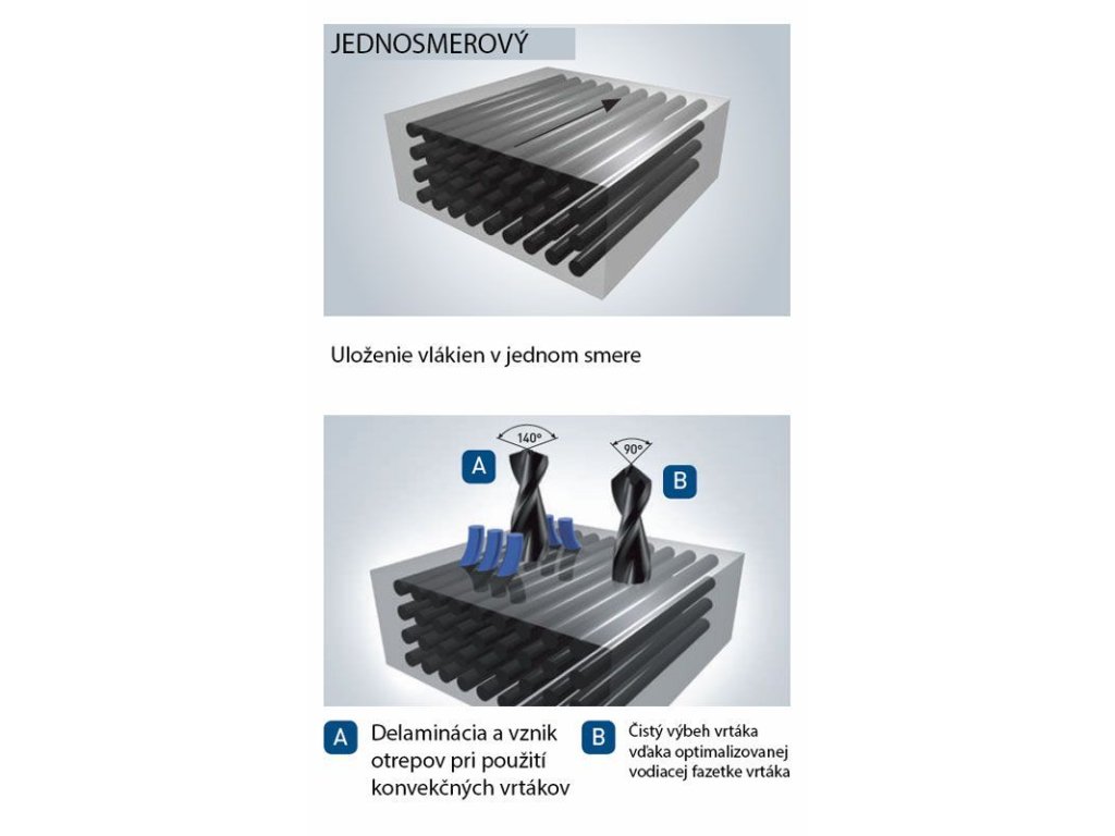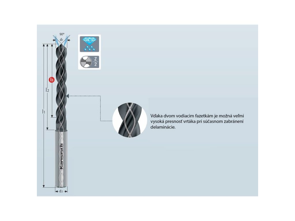 Dve vodiace fazetky pre veľmi vysokú presnosť vŕtania pri súčasnom zabránení delaminácie.