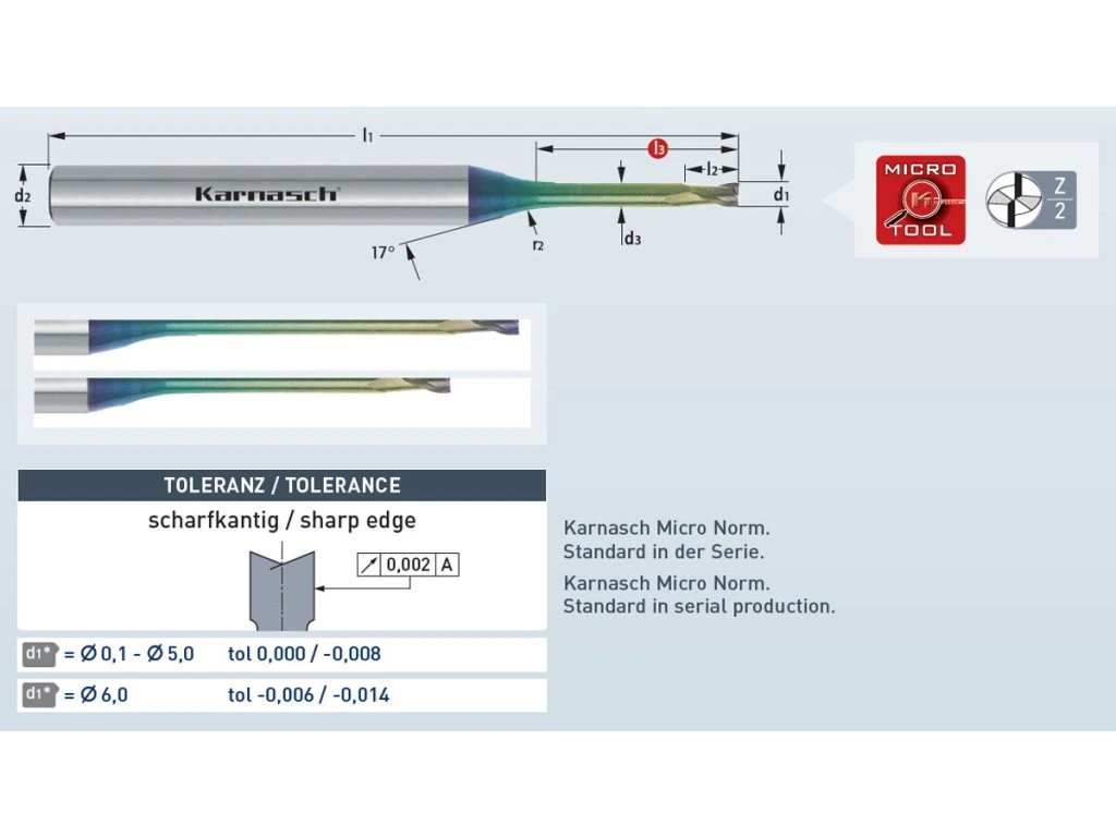 306202 Carbide Micro - Schaftfräser, scharfe Kante, < 15xD Schnitttiefe, beschichtet