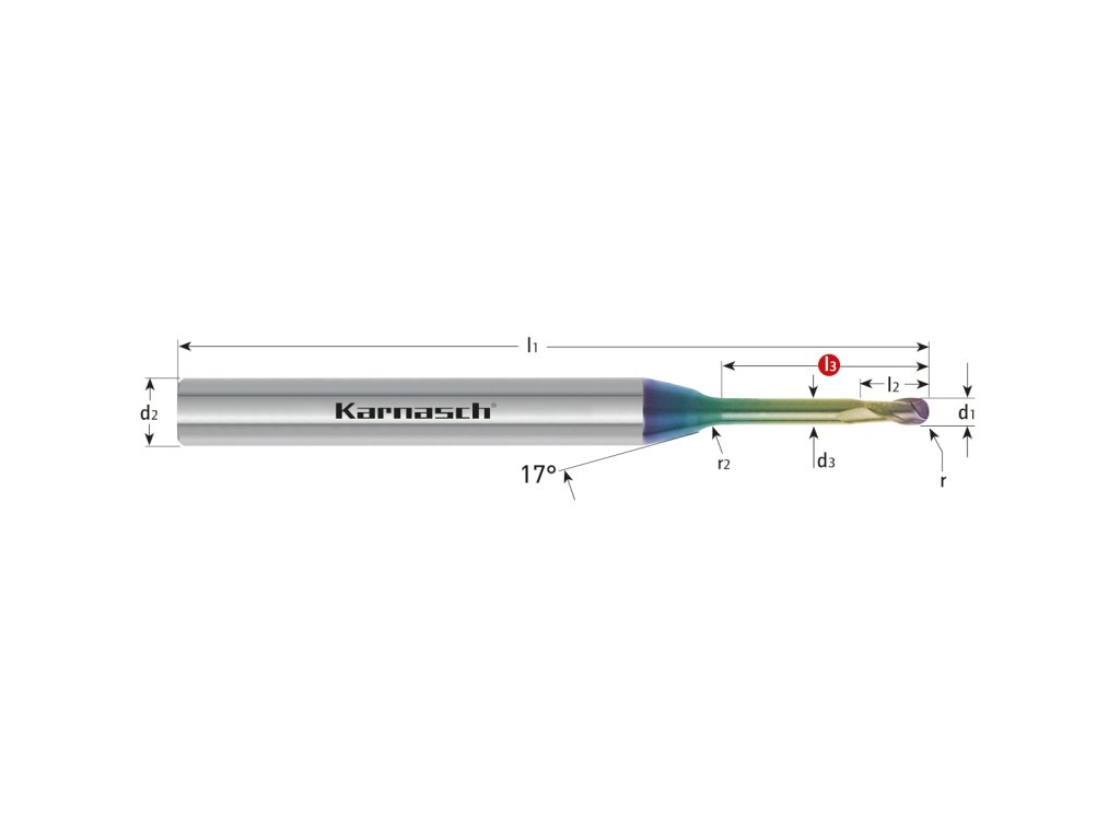 306204 Tvrdokovová Micro - stopková fréza, guľové ostrie, < 15xD rezná hĺbka, povlakovaná