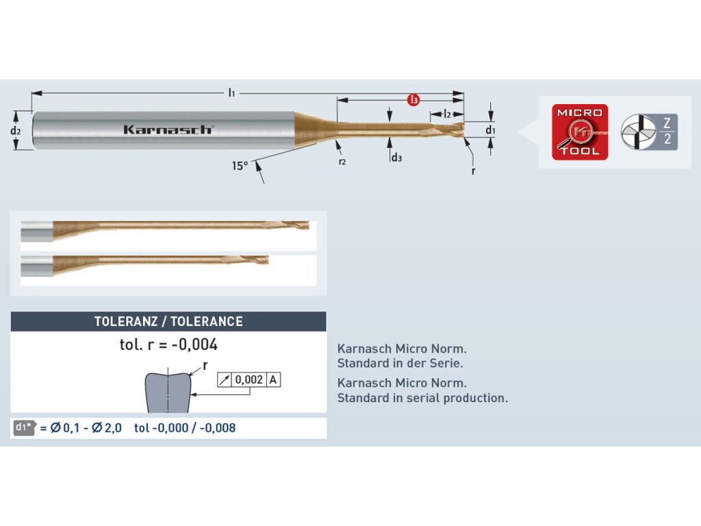 3062560060010040 | Tvrdokovová Micro-stopková fréza, zaoblené ostrie 0,6/0,10x4-50x4 mm