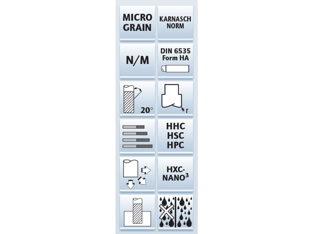| Typ opracovania: | HHC - high-hard cutting, HPC - High-performance cutting, HSC - high speed cutting |