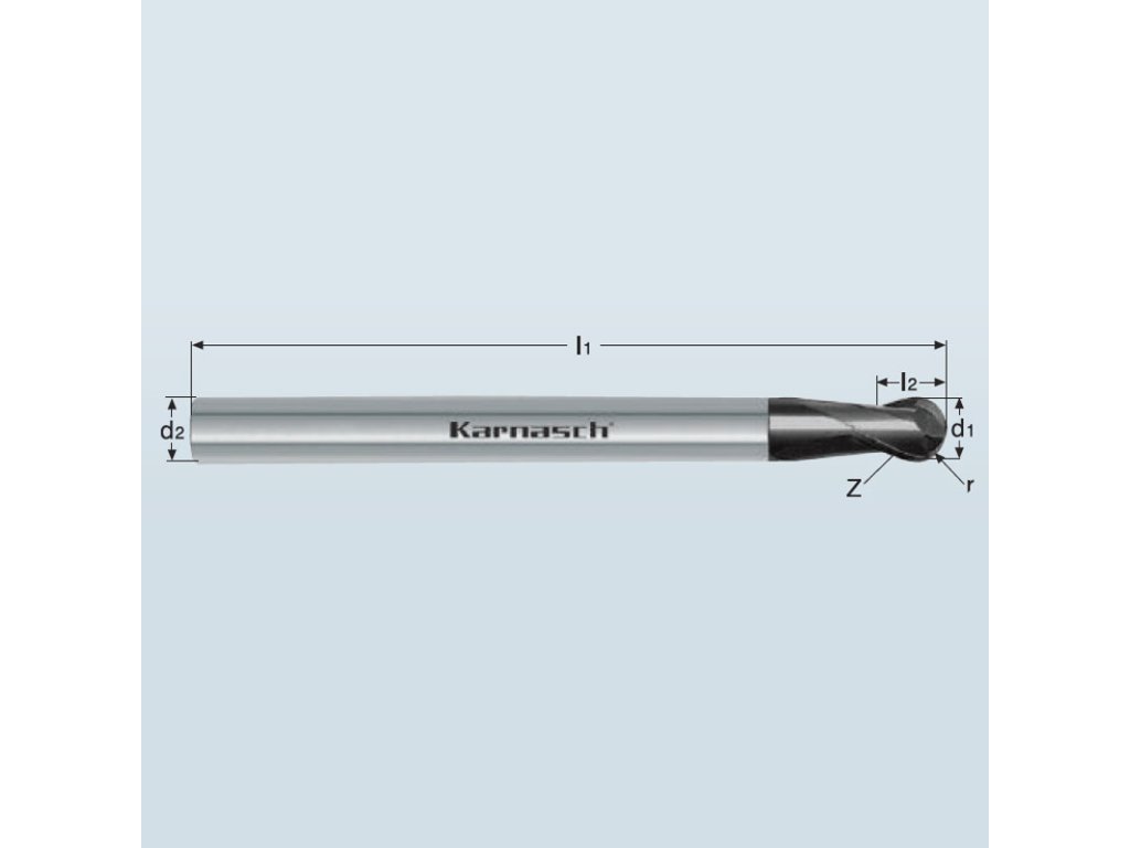 K30.6479 Tvrdokovová 3D rádiusová fréza , extra dlouhá, povlakovaná ocel < 55 HRC, UNI, šedá litina EXPERT** Vhodné pro materiál: ocel < 55 HRC UNI šedá litina