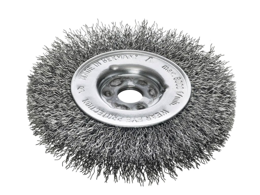 Die Einscheibenbürste wird zum Entfernen von Rost, Farbe, etc. und zur Reinigung von Schweißnähten verwendet. Mit ihr lassen sich leichte Entgratarbeiten durchführen und die Anlassfarbe bei Edelstahlschweißnähten entfernen. Der Stahlbesatz ist für Stahloberflächen geeignet. Die Bürste zeichnet sich mit ihrem gewellten Draht mit dichtem Besatz und Rundlaufgenauigkeit aus. Die hochwertige „Made in Germany“ Qualität wird oft in metallverarbeitenden Industrie- und Handwerksbetrieben und Automobilzulieferern verwendet.