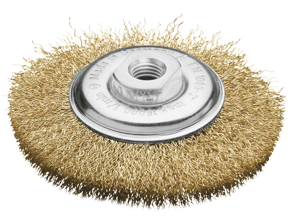 422767 | Kegelbürste KB Drm 100 x 8-12 mm Stahldraht vermessingt STM gewellt 0.30 mm Gew. M14 Besatzhöhe 20 mm