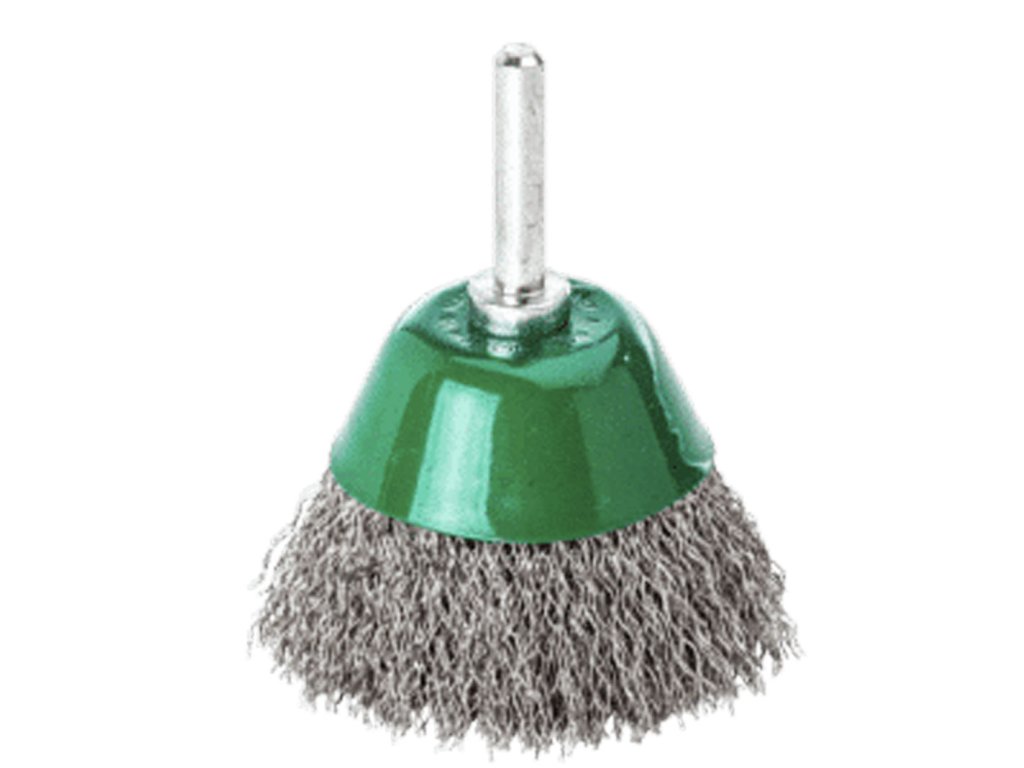 Bearbeitung von Edelstahl- bzw. Aluminiumoberflächen geeignet. Die Aggressivität ist mittel. Mit ihrem fest montierten Schaft von 6 mm ist die Bürste für den professionellen Einsatz geeignet. Charakteristisch für dieses Allroundwerkzeug ist der dichte Drahtbesatz und ihr unwuchtfreier Lauf. Die hochwertige „Made in Germany“ Qualität wird oft in metallverarbeitenden Industrie- und Handwerksbetrieben, Autowerkstätten, Treppen-, Geländer- und Behälterbauern verwendet.