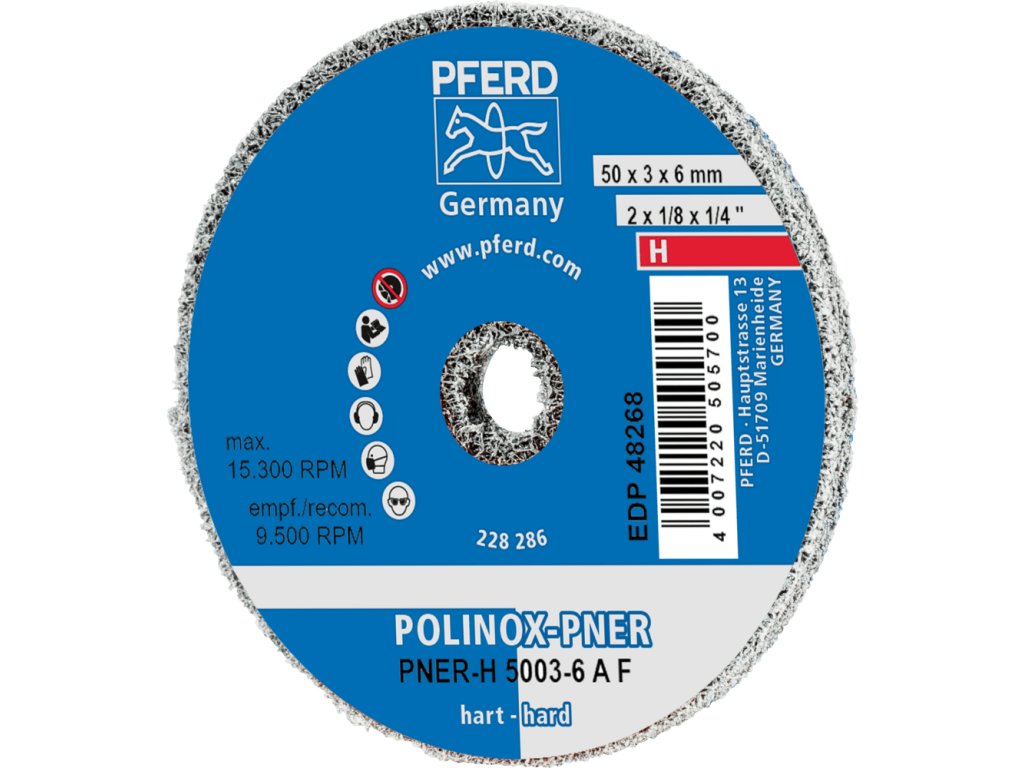 44691005 | POLINOX verpresstes Vlies-Rad PNER-H 50x3x6 mm, Hart A Fein für Finish