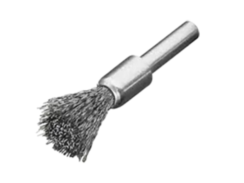 Die Pinselbürste wird in Handschleifer oder biegsame Wellen eingespannt. Sie dient zur Bearbeitung schwer zugänglicher Stellen, zur Reinigung von Ecken, Vertiefungen und Bohrungen. Außerdem zur Reinigung von Formen/Gußteilen und zur Entfernung von Lack- und Gummiresten. Der Stahlbesatz ist für Stahloberflächen geeignet. Die Aggressivität ist mittel. Mit ihrem fest montierten Schaft von 6 mm ist die Bürste für den professionellen Einsatz und schnelldrehende Werkzeuge geeignet. Die hochwertige „Made in Germany“ Qualität wird oft in metallverarbeitenden Industrie- und Handwerksbetrieben, Autowerkstätten, Treppen-, Geländer- und Behälterbauern verwendet. Anwendung Die Pinselbürste wird zum Reinigen, Entlacken, Entschlacken, Entzundern und Entgraten verwendet. Anwendungen: Entgraten, Entlacken, Entschlacken, Entzundern, Reinigen Oberflächen: Gusseisen, Stahl