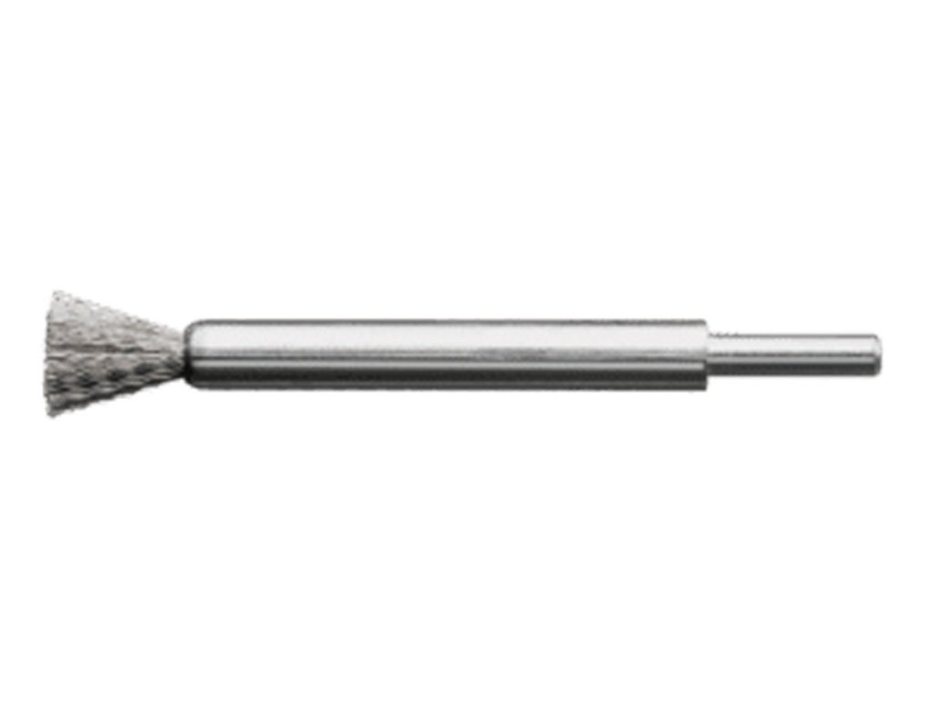 Die Pinselbürste wird in Handschleifer oder biegsame Wellen eingespannt. Sie dient zur Bearbeitung schwer zugänglicher Stellen, zur Reinigung von Ecken, Vertiefungen und Bohrungen. Außerdem zur Reinigung von Formen/Gußteilen und zur Entfernung von Lack- und Gummiresten. Der Stahlbesatz ist für Stahloberflächen geeignet. Die Aggressivität ist mittel. Mit ihrem fest montierten Schaft von 6 mm ist die Bürste für den professionellen Einsatz und schnelldrehende Werkzeuge geeignet. Die hochwertige „Made in Germany“ Qualität wird oft in metallverarbeitenden Industrie- und Handwerksbetrieben, Autowerkstätten, Treppen-, Geländer- und Behälterbauern verwendet.