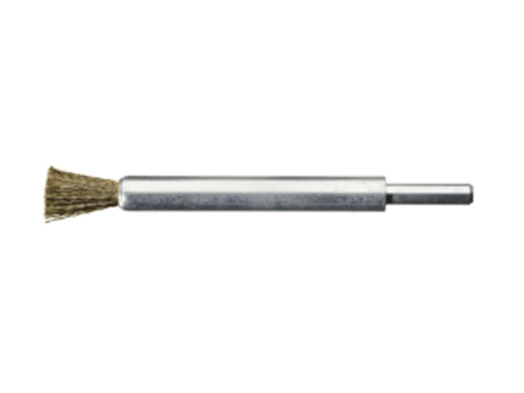 Die Pinselbürste wird in Handschleifer oder biegsame Wellen eingespannt. Sie dient zur Bearbeitung schwer zugänglicher Stellen, zur Reinigung von Ecken, Vertiefungen und Bohrungen. Außerdem zur Reinigung von Formen/Gußteilen und zur Entfernung von Lack- und Gummiresten. Der Messingdrahtbesatz ist für weiche und empfindliche Oberflächen geeignet. Mit ihrem fest montierten Schaft von 6 mm ist die Bürste für den professionellen Einsatz und schnelldrehende Werkzeuge geeignet. Die hochwertige „Made in Germany“ Qualität wird oft in metallverarbeitenden Industrie- und Handwerksbetrieben, Autowerkstätten, Treppen-, Geländer- und Behälterbauern verwendet.