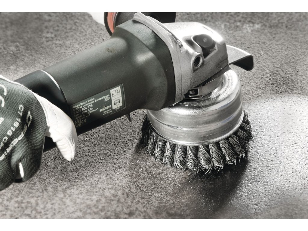 Die Zopf-Topfbürste ist zum Einsatz auf handgeführten Winkelschleifern, zur Schweißnahtbearbeitung, zur Entfernung von Zunder, Rost, Lack, Schlacke und Betonresten geeignet. Die Bürste mit Edelstahldraht ist für die Bearbeitung größerer Edelstahl- bzw. Aluminiumoberflächen geeignet. Die gezopfte Topfbürste ist für den professionellen Einsatz geeignet und zeichnet sich durch einen ruhigen und Unwucht freien Lauf aus. Die hochwertige „Made in Germany“ Qualität wird oft in metallverarbeitenden Industrie- und Handwerksbetrieben, Autowerkstätten, Treppen-, Geländer- und Behälterbauern verwendet.