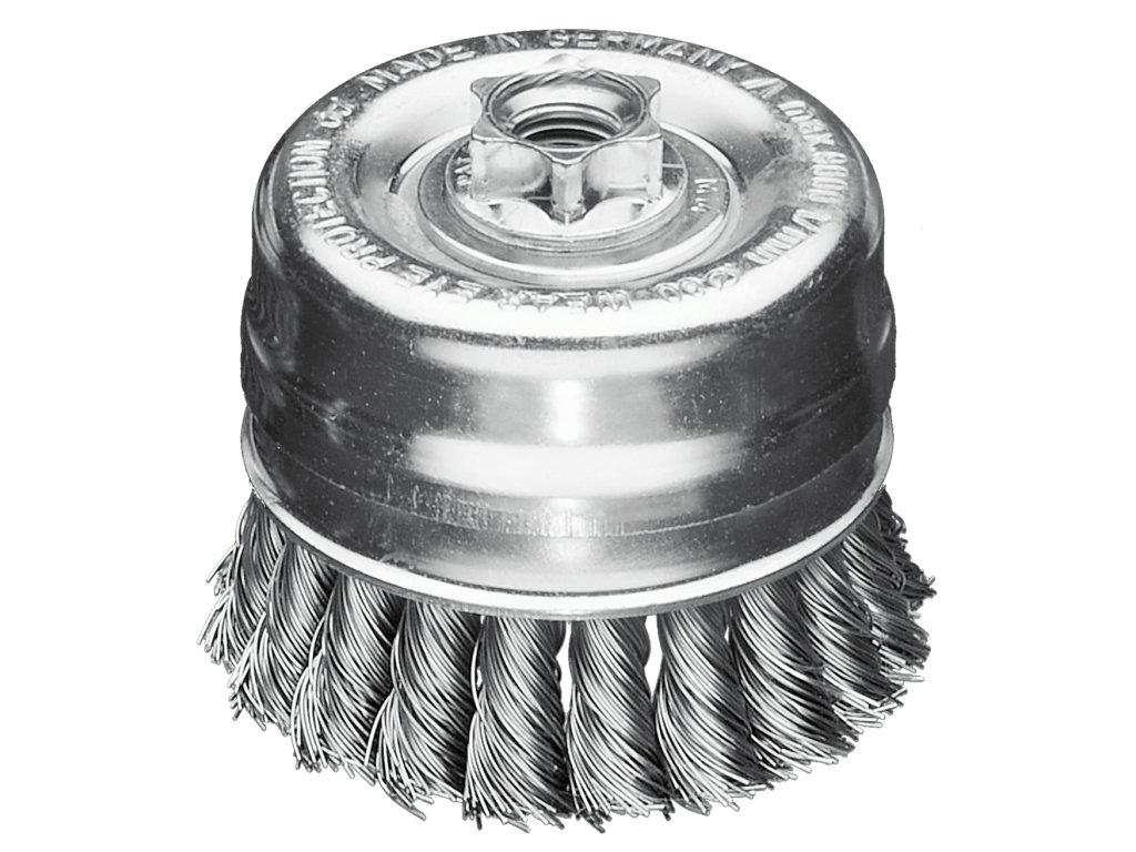 Die Zopf-Topfbürste ist zum Einsatz auf handgeführten Winkelschleifern, zur Schweißnahtbearbeitung, zur Entfernung von Zunder, Rost, Lack, Schlacke und Betonresten geeignet. Die Bürste mit Stahldraht ist für die Bearbeitung größerer Stahloberflächen geeignet. Die gezopfte Topfbürste ist für den professionellen Einsatz geeignet. Diese Topfbürste zeichnet sich durch einen ruhigen und Unwucht freien Lauf aus. Die Aggressivität ist mittel. Die hochwertige „Made in Germany“ Qualität wird oft in metallverarbeitenden Industrie- und Handwerksbetrieben, Autowerkstätten, Treppen-, Geländer- und Behälterbauern verwendet.