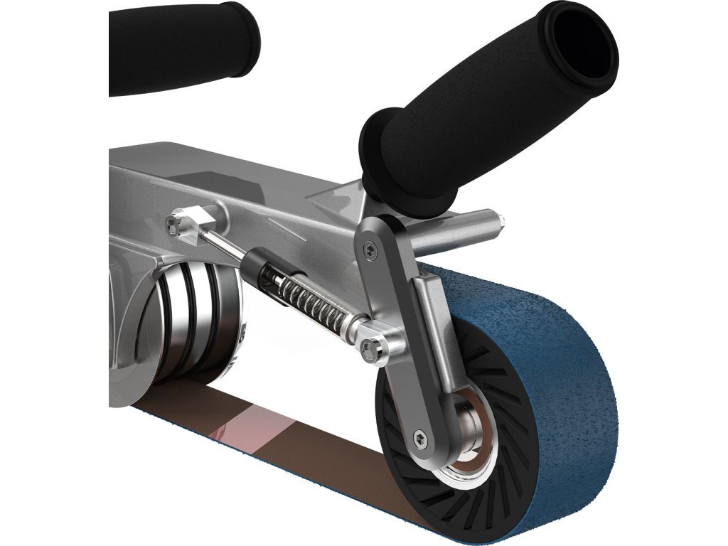 Das neue, verschleißfreie Federdämpferkonzept aus Edelstahl ermöglicht maximalen Rohrschluss von Schleif- und Polierbändern bei minimalem Kraftaufwand. Erhältlich als Nachrüstsatz oder als optionales Zubehör (anstelle eines Gasdämpfers) beim Kauf eines Neugeräts.