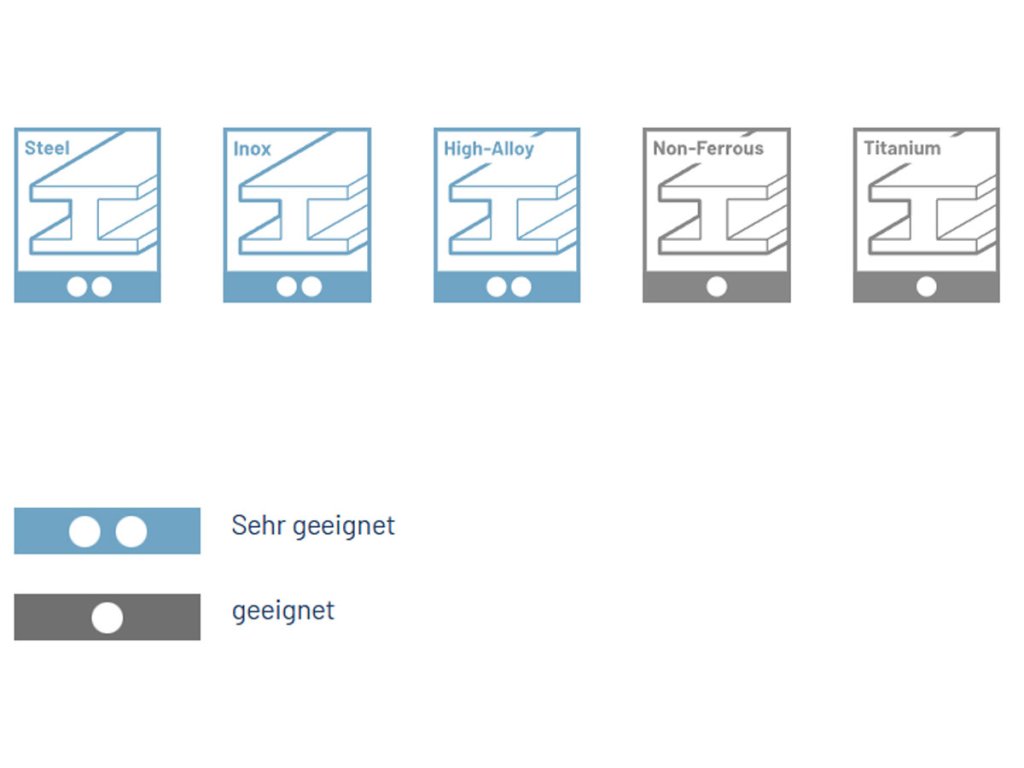 | Bearbeitetes Material: | Edelstahl, hochlegierte Legierungen, Nichteisenmetalle/Eisenmetalle, Stahl, Titan und Legierungen |