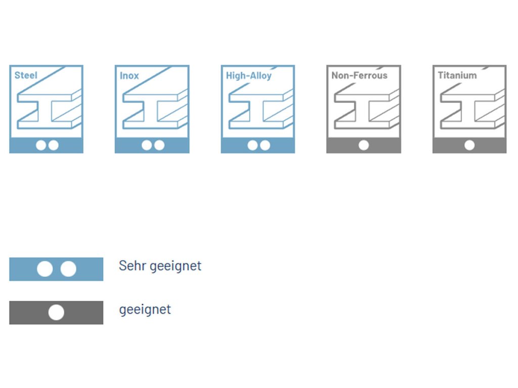 | Bearbeitetes Material: | Edelstahl, hochlegierte Legierungen, Nichteisenmetalle/Eisenmetalle, Stahl, Titan und Legierungen |