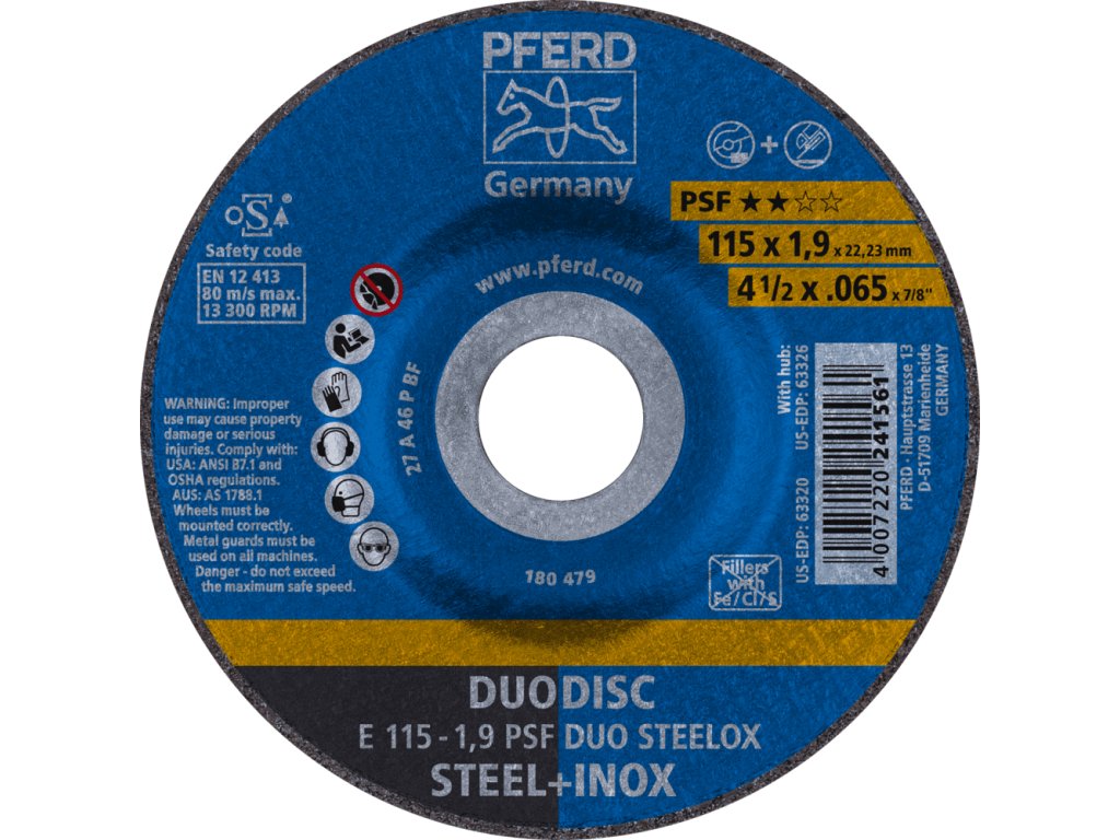 62011630 | Trenn- und Schleifscheibe 115 x 1,9 x 22,23 mm, PSF DUODISC STEELOX