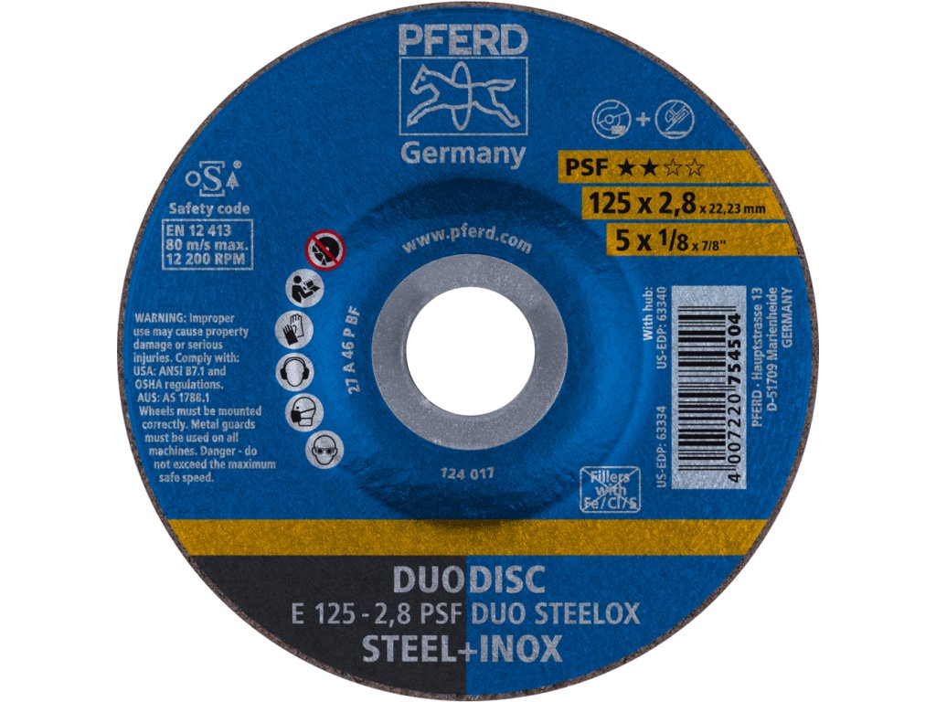 62012620 | Trenn- und Schleifscheibe 125 x 2,8 x 22,23 mm, PSF DUODISC STEELOX