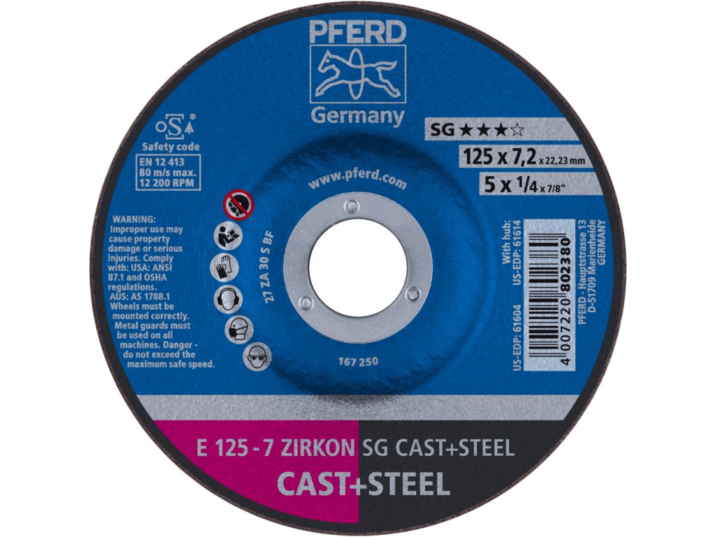 62212747 | Schleifscheibe für Gießereien 125 x 7,2 x 22,23 mm, ZIRKON SG CAST + STEEL