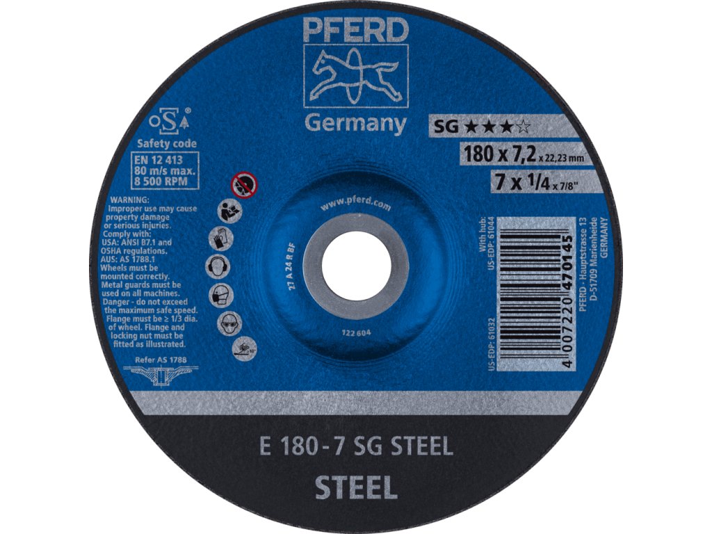 62217626 | Schleifscheibe 180 x 7,2 x 22,23 mm, SG STEEL