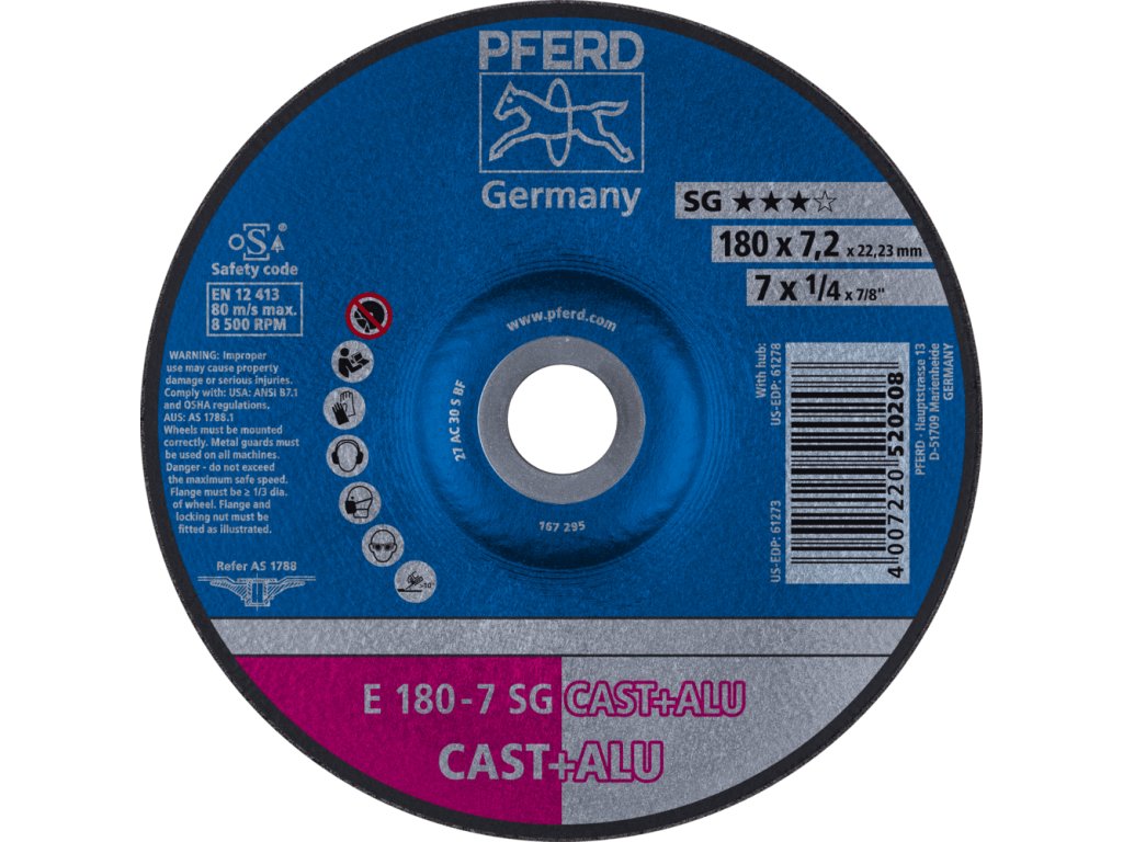 62217681 | Schleifscheibe für Gießereien 180 x 7,2 x 22,23 mm, SG CAST + ALU
