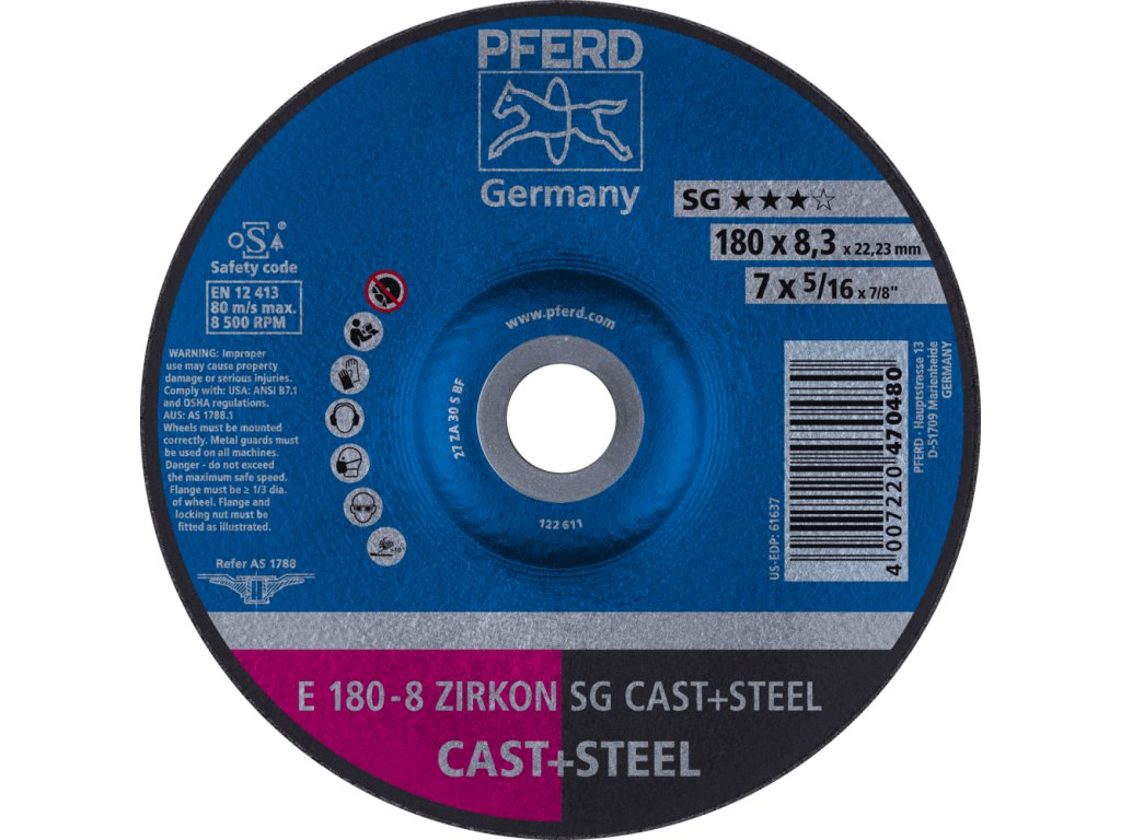62217837 | Schleifscheibe für Gießereien 180 x 8,3 x 22,23 mm, ZIRKON SG CAST + STEEL