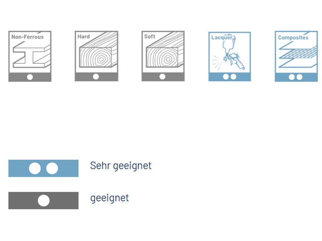 Bearbeitetes Material: Hartholz, lackierte Oberfläche, Nichteisenmetalle/Eisenmetalle, Verbundwerkstoffe, Weichholz
