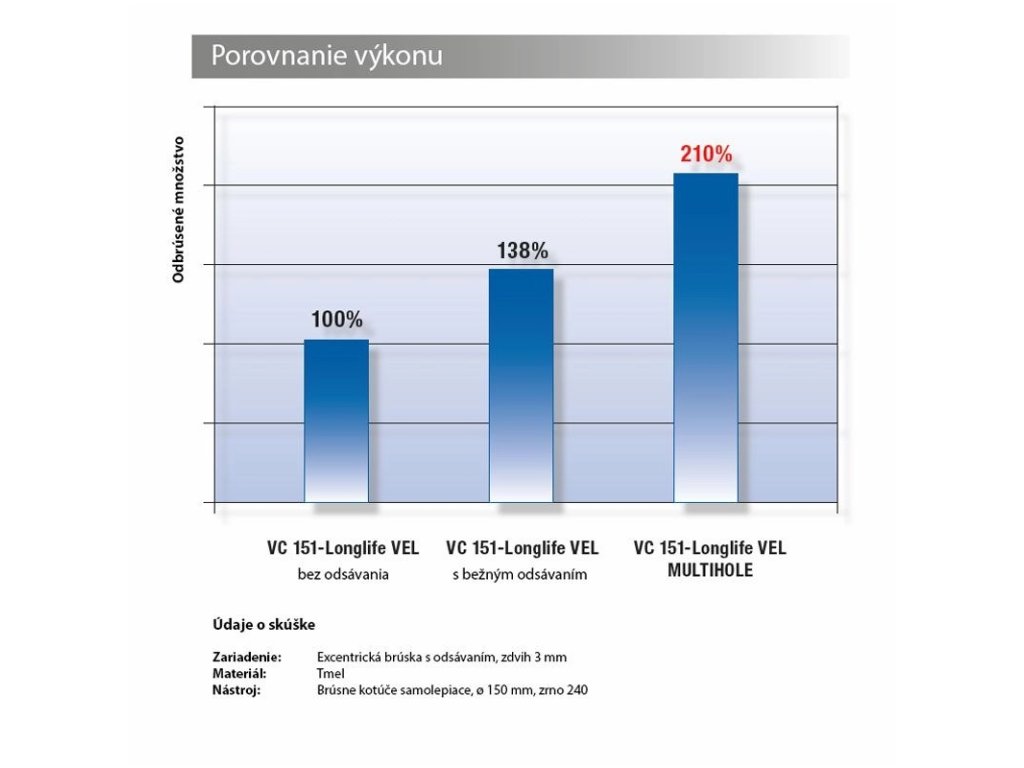 Ďalšie výhody pri použití brúsnych kotúčov so systémom odsávania prachu MULTIHOLE: Dlhšia životnosť v porovnaní s brúsnymi kotúčmi s konvenčným odsávaním prachu a výrazne lepší výsledok vďaka celoplošnému odsávaniu prachu