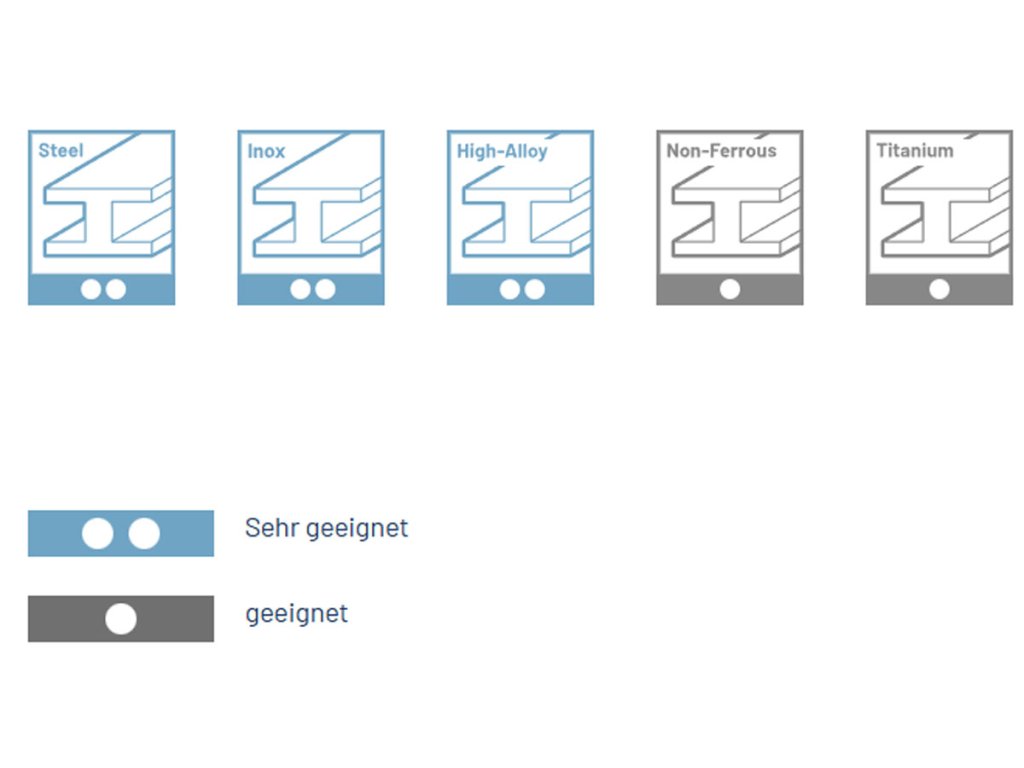 | Bearbeitetes Material: | Edelstahl, hochlegierte Legierungen, Nichteisenmetalle/Eisenmetalle, Stahl, Titan und Legierungen |