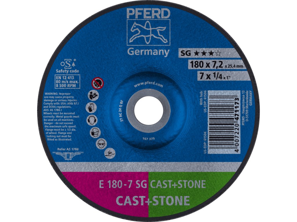62917625 | Schleifscheibe für Gießereien 180 x 7,2 x 22,23 mm, SG CAST + STONE