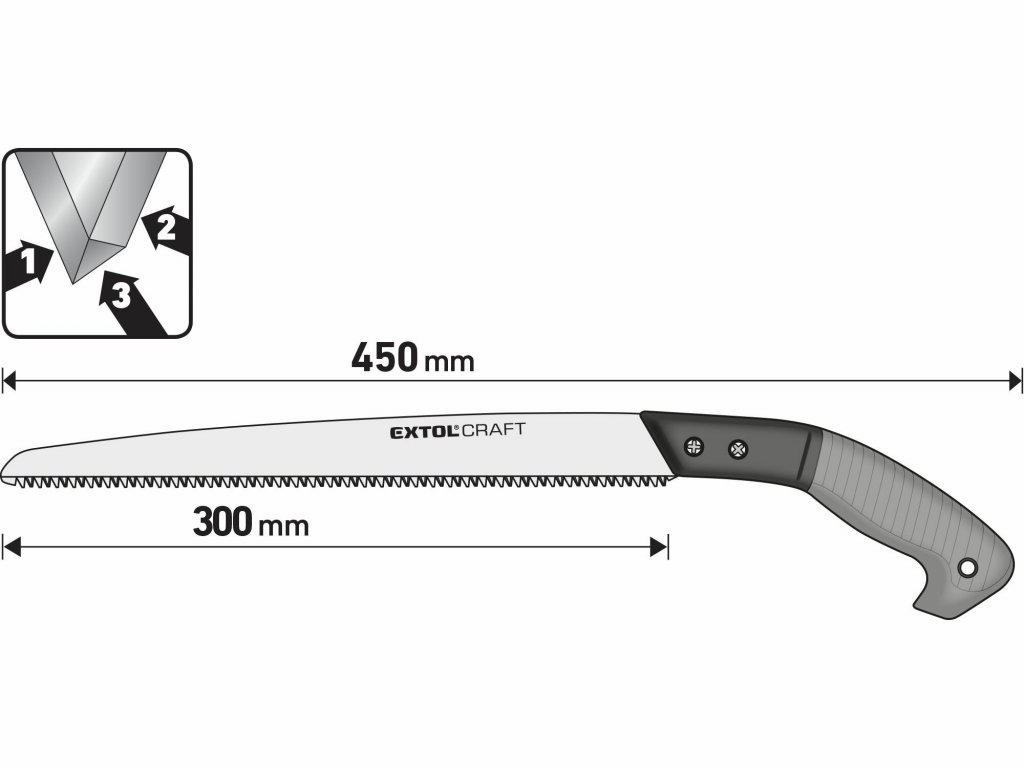 - Dreiseitig geschliffene Haifischzähne sorgen für einen sauberen Schnitt und verhindern das Verklemmen der Klinge im Material.