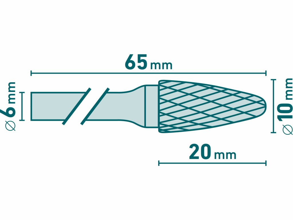 8703754 | F (RBF) - Hartmetall Rundbogen Frässtift HP-3 10,0x20x6-65 mm, unbeschichtet