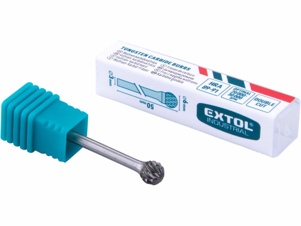Die Schaftfräser von EXTOL INDUSTRIAL bestehen aus hochwertigem Wolframkarbid und eignen sich zum Entgraten, Schleifen und Bearbeiten von Metallwerkstoffen wie Gusseisen, Stahlguss, Kohlenstoffstahllegierungen, Edelstahl usw. bis zu einer Härte von 65 HRC.