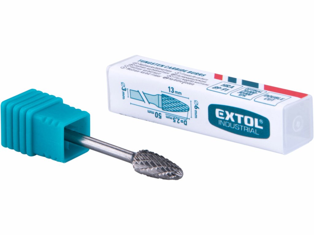 Die Schaftfräser von EXTOL INDUSTRIAL bestehen aus hochwertigem Wolframkarbid und eignen sich zum Entgraten, Schleifen und Bearbeiten von Metallwerkstoffen wie Gusseisen, Stahlguss, Kohlenstoffstahllegierungen, Edelstahl usw. bis zu einer Härte von 65 HRC.