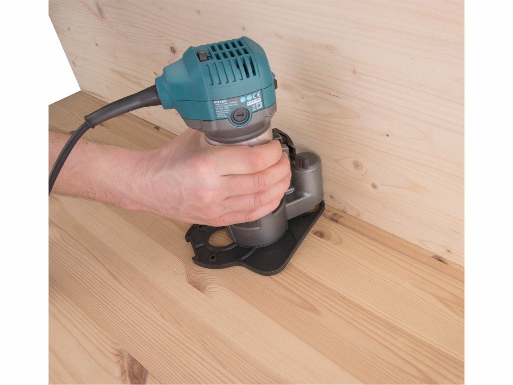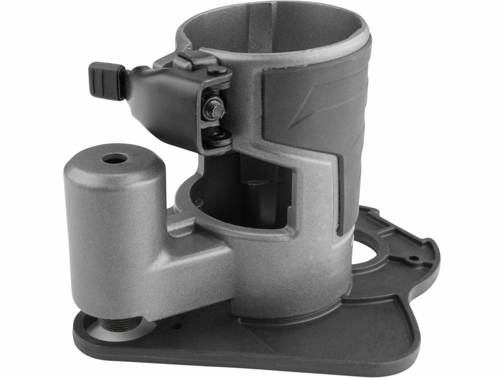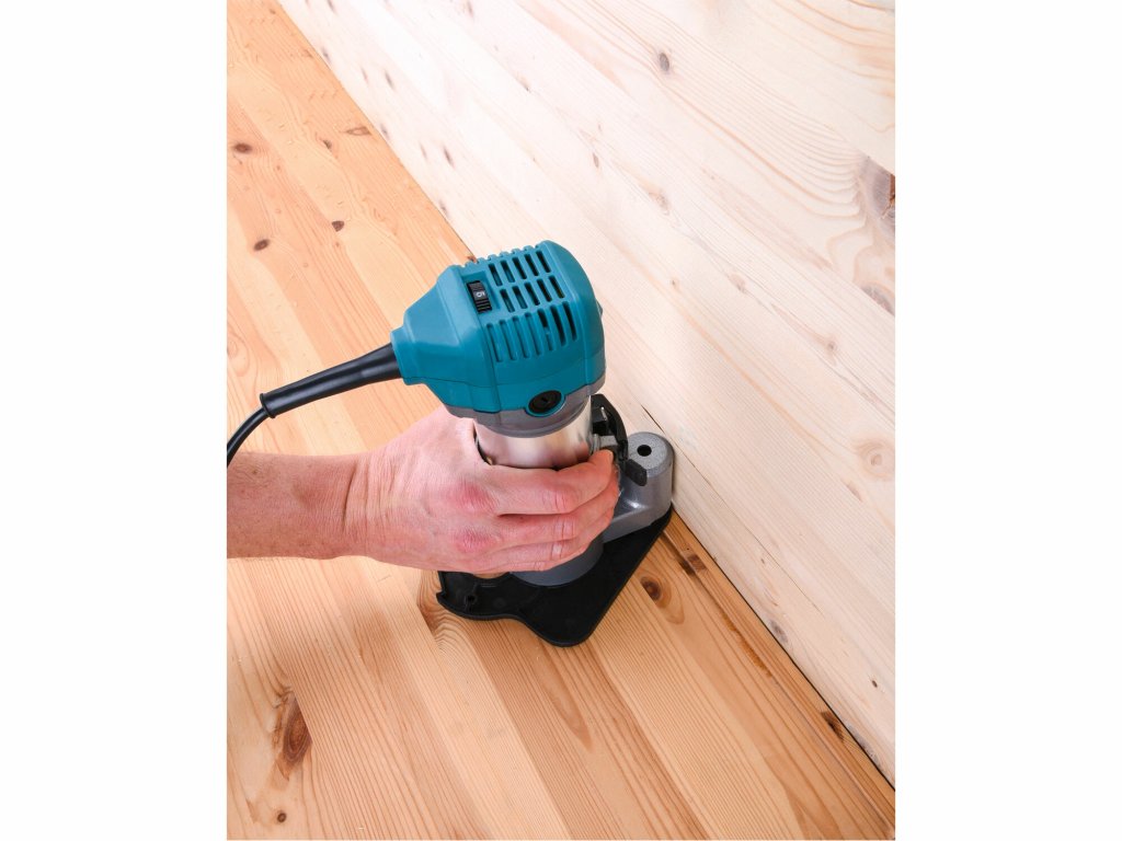 Die Basis ermöglicht das Fräsen in Ecken und an Stellen, an denen der Zugang mit einer herkömmlichen Basis aufgrund von Platzmangel nicht möglich ist. Mit dieser Basis kann in einem Abstand von 18 mm von der Ecke gefräst werden.