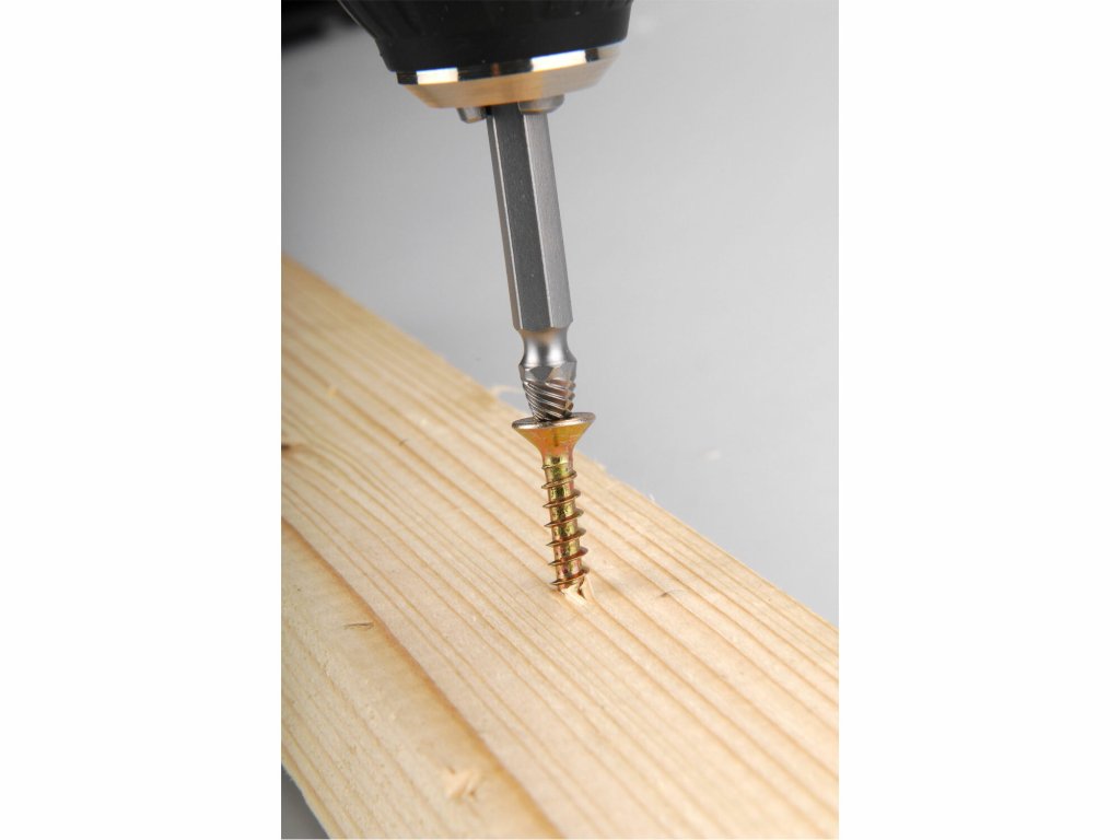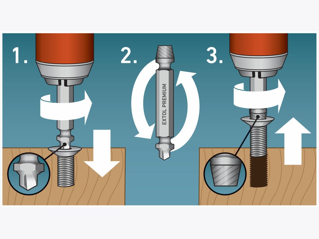 - Doppelseitiges Werkzeug: Entgrater auf der einen, Ausdreher auf der anderen Seite.