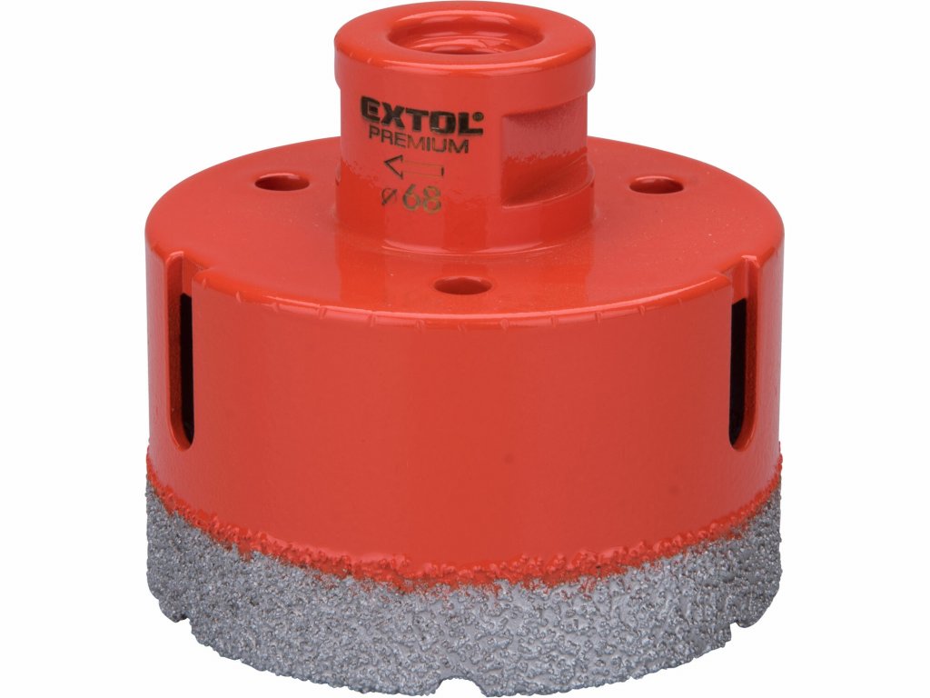 - Die Diamantkrone dient zum Bohren von Löchern in verschiedenen Baumaterialien wie Fliesen, Verkleidungen, Keramik, Glas etc.