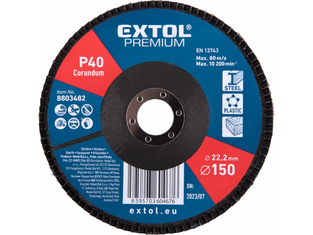 8803482 | Fächerschleifscheibe 150x22,2 mm, P40, EXTOL PREMIUM