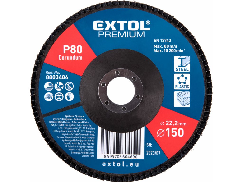 8803484 | Fächerschleifscheibe 150x22,2 mm, P80, EXTOL PREMIUM