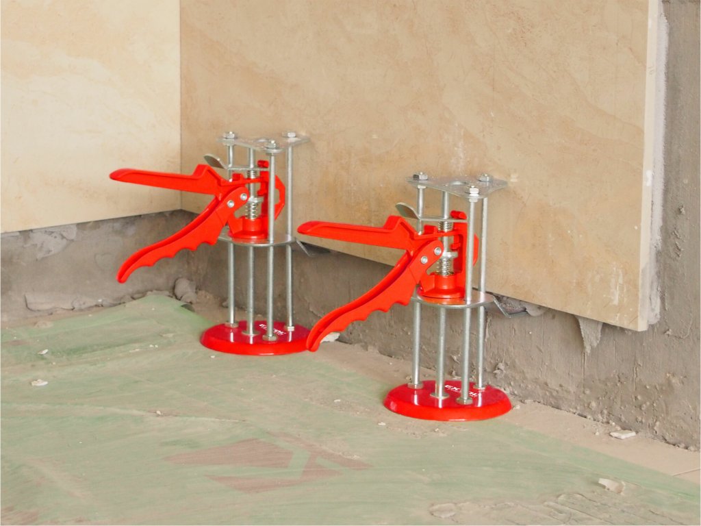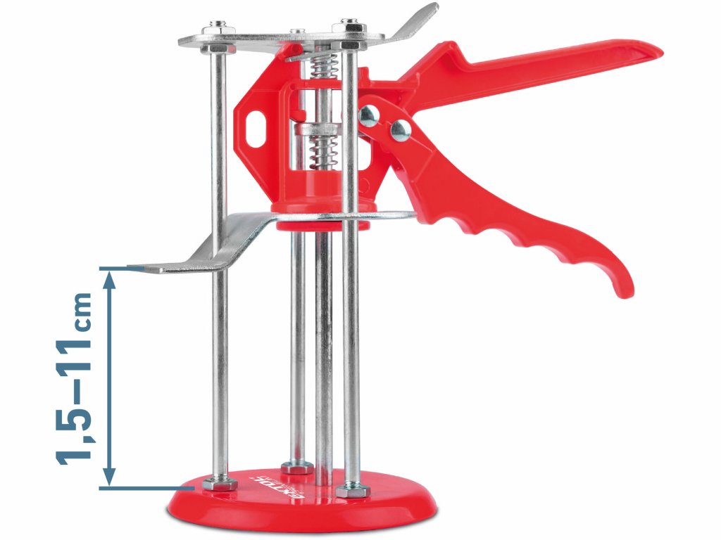 - Es dient zum sanften Bewegen, Abstützen oder vorübergehenden Fixieren von z. B. großformatigen Fliesen, Gipskartonplatten oder anderen schwer zu handhabenden Materialien in vertikaler Position, in der Regel bis zu deren endgültiger Befestigung oder Verankerung.